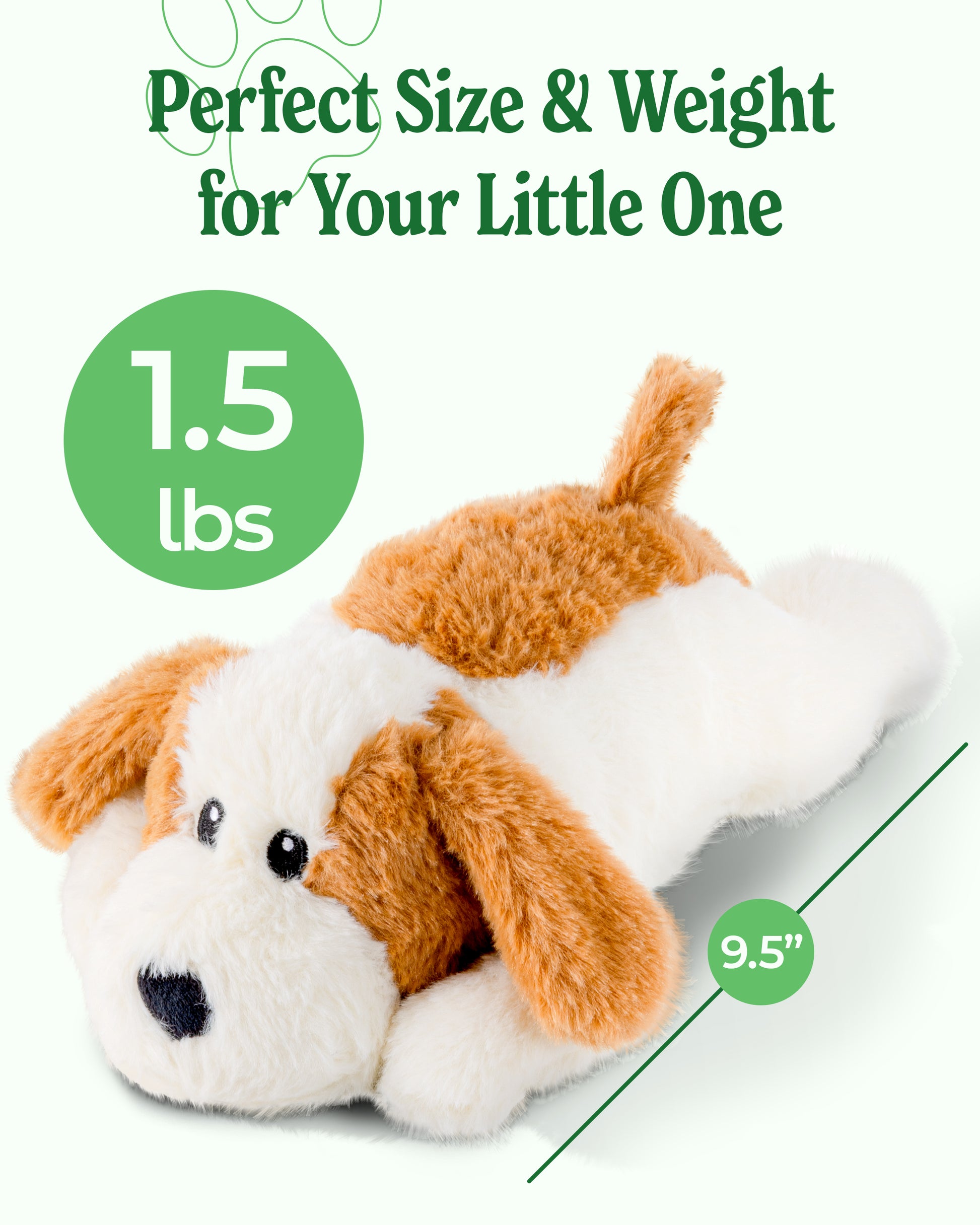 Provide children with a comforting embrace through our therapeutic weighted plush puppy.